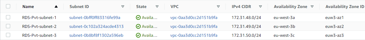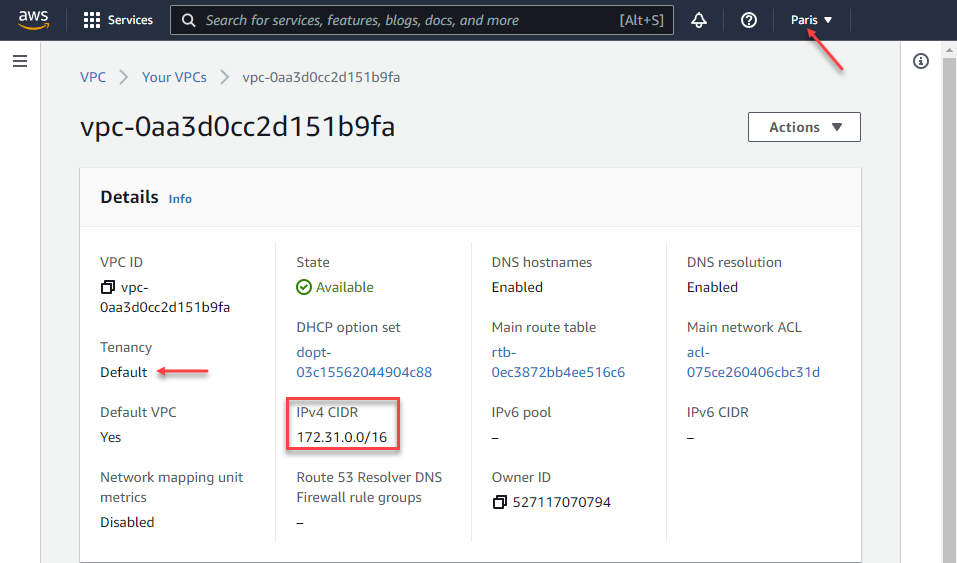 For the following practical exercise used the region of Europe (Paris) / eu-west-3 that has three availability zones and where the VPC that comes by default for this region will be used, later during the creation and configuration of the Amazon RDS instance the respective subnets will be created.