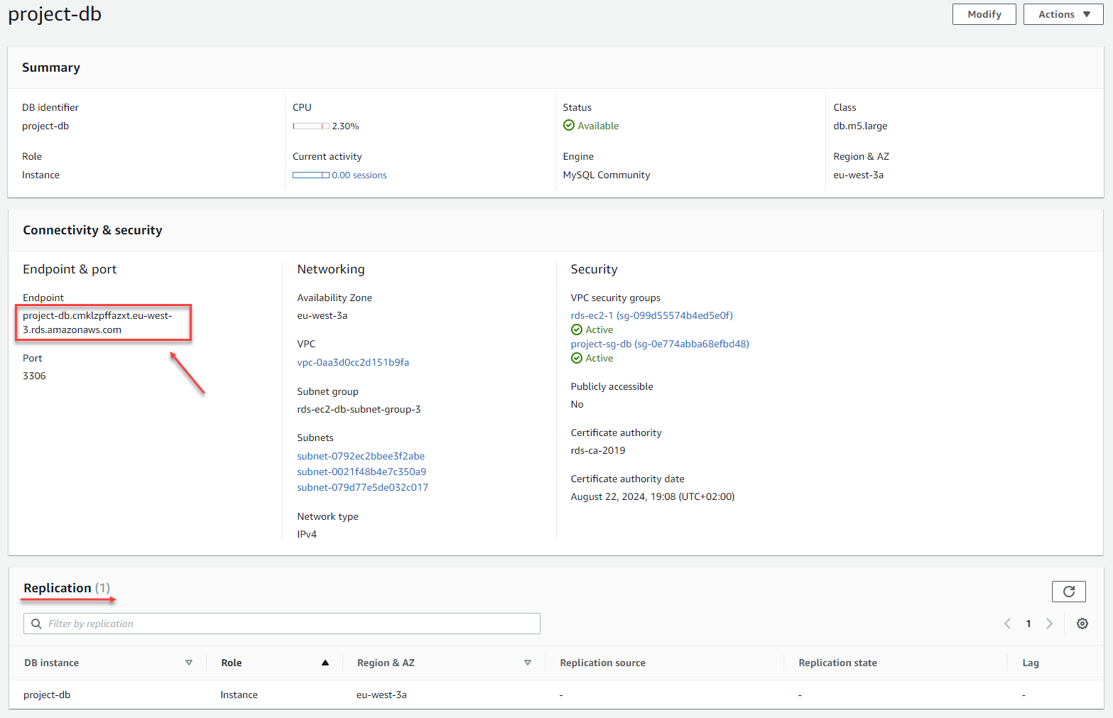For the part of the connection tests and verification of the Multi-AZ deployment model, we are going to start with the part of the connectivity tests from an EC2 instance (Linux) and later we are going to simulate a failure to verify that the Multi-AZ deployment model and the replication works correctly.